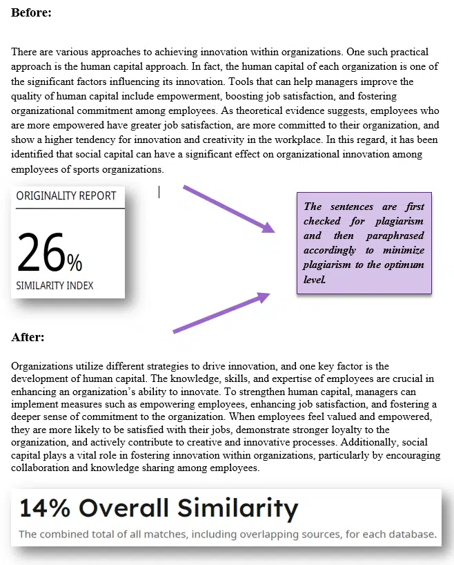 Paraphrasing helps in reducing plagiarism by rewriting content uniquely. However, we also offer plagiarism checking and ensure that the final version is free from any duplication.